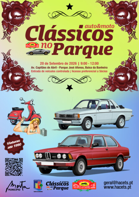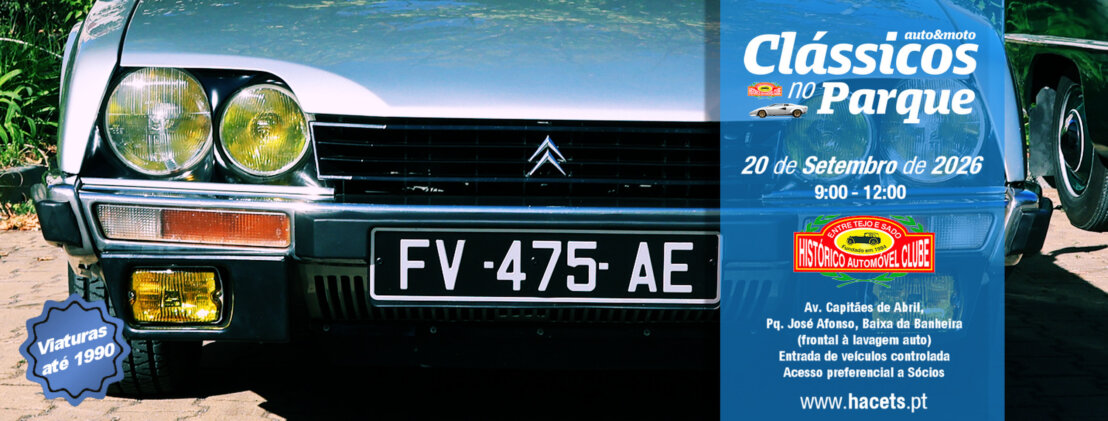 No próximo dia 20 de Setembro de 2026, Domingo, a Direção do Histórico Automóvel Clube do Entre Tejo e Sado (HACETS), vai realizar, como habitualmente, aos 3.º Domingos de Setembro, entre as 9 e as 12 horas, o seu Encontro Mensal de Veículos Históricos, desta feita, e, devido à realização das Festas em Honra da Nossa Senhora da Boa Viagem na Moita, será deslocalizado para a Avenida Capitães de Abril, no Parque José Afonso, no estacionamento frontal à lavagem automóvel na Baixa da Banheira e terá a designação de “Clássicos no Parque – 20/Outubro/2026”.